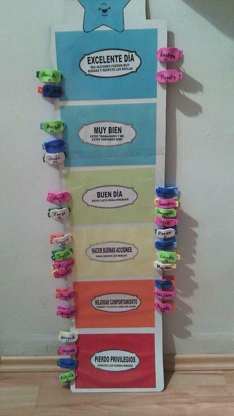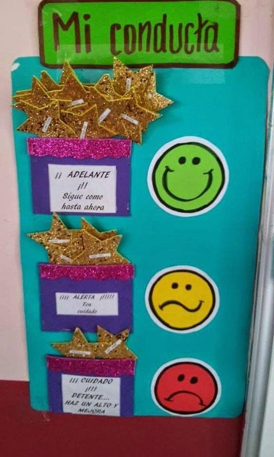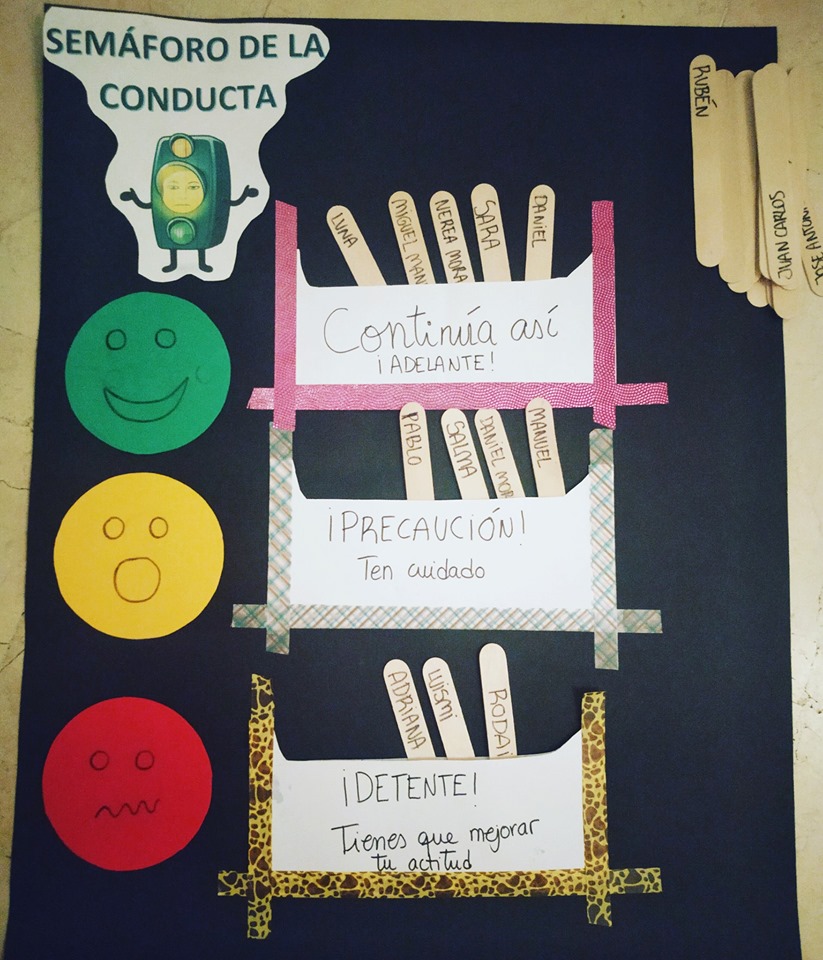 Con marcadores, pinzas o paletas con el nombre del niño, se coloca según la valoración de su conducta. Una vez hecho esto vienen los refuerzos positivos, por ejemplo, lo que obtengan el código verde podrán tener acceso a ciertos privilegios como tomar una lectura libre, acceder al área de juegos, una estrellita para la frente o un dulce.