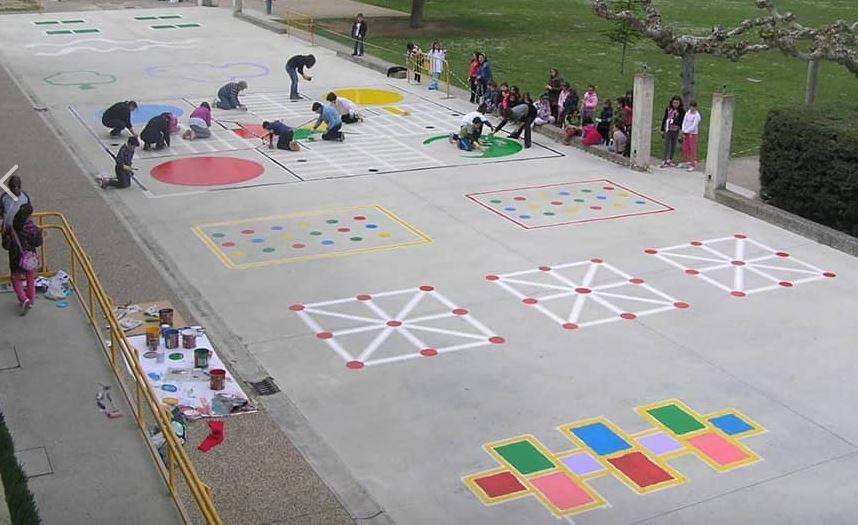 De momento, a modo de inspiración, te traigo muchas ideas para que puedas pensar este verano en cómo podría ser el patio de tu escuela (hasta el patio de tu casa podría ser un buen espacio también para replantear con estas propuestas). Ideas sencillas, que pueden realizarse con bastante facilidad en cualquier lugar y con materiales que seguro se pueden conseguir sin problemas!! Y también te recuerdo que tienes otras tantas ideas para convertir un patio gris en un patio de color, juego y aprendizaje pintando juegos en el patio del colegio.