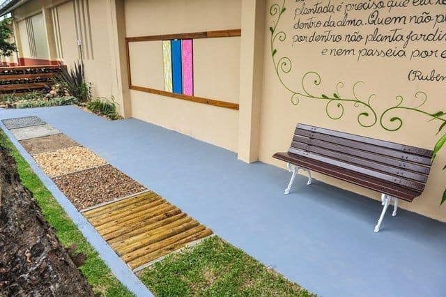 2. Transformar el juego y las relaciones que se crean durante el recreo, en sentido estricto. ¿Cómo? Favoreciendo la presencia de elementos que inviten al juego en equipo, a la negociación entre niños, a la imaginación… Introduciendo variedad de texturas para jugar/experimentar con ellas, elementos de motricidad… y usurpándole el protagonismo a las pistas de fútbol que han monopolizado los patios durante años.
