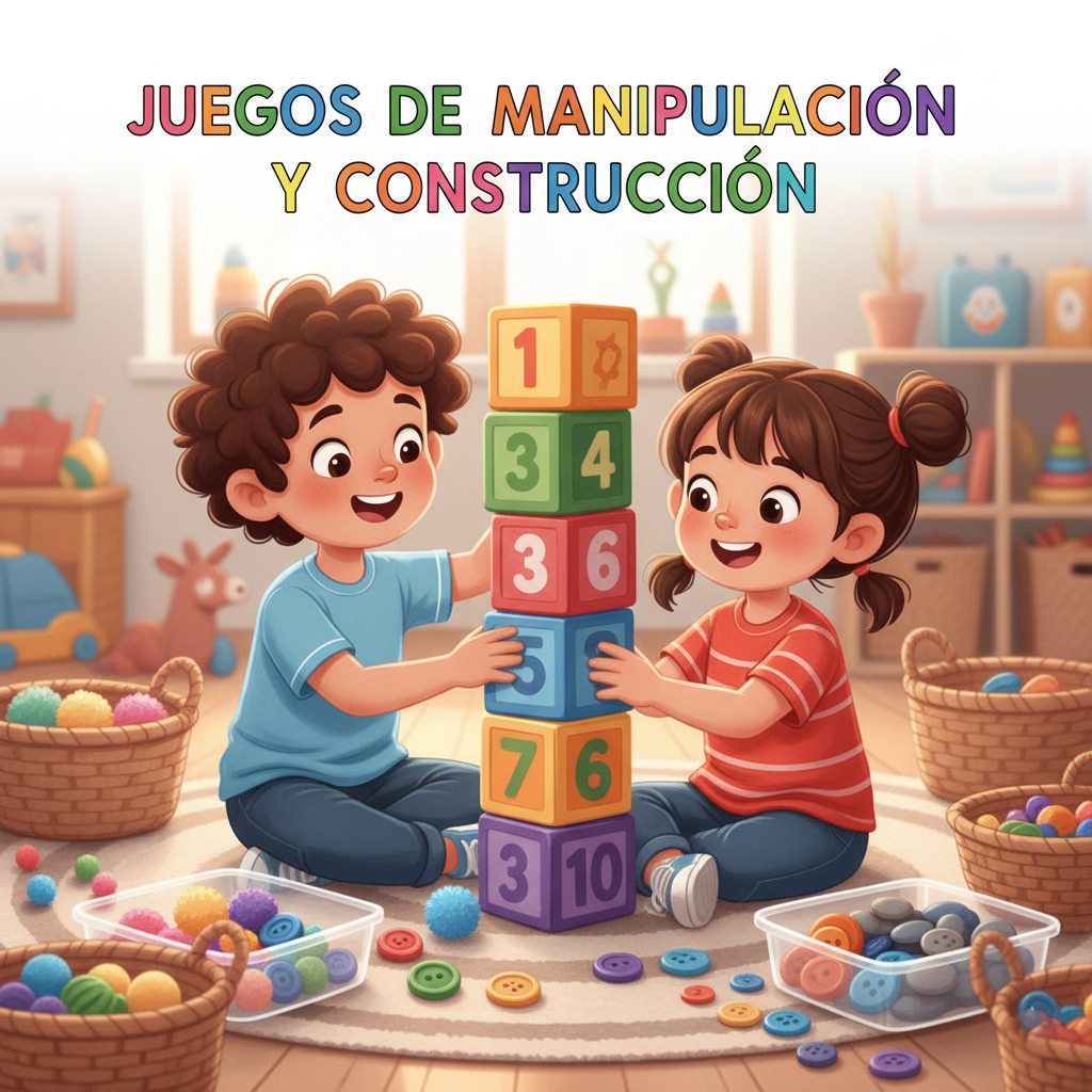 Usar objetos que los niños puedan tocar y mover es fundamental. Los bloques de construcción, como los legos, son perfectos para esto. Pídeles que te den «dos bloques rojos» o que construyan una torre con «cinco bloques azules».