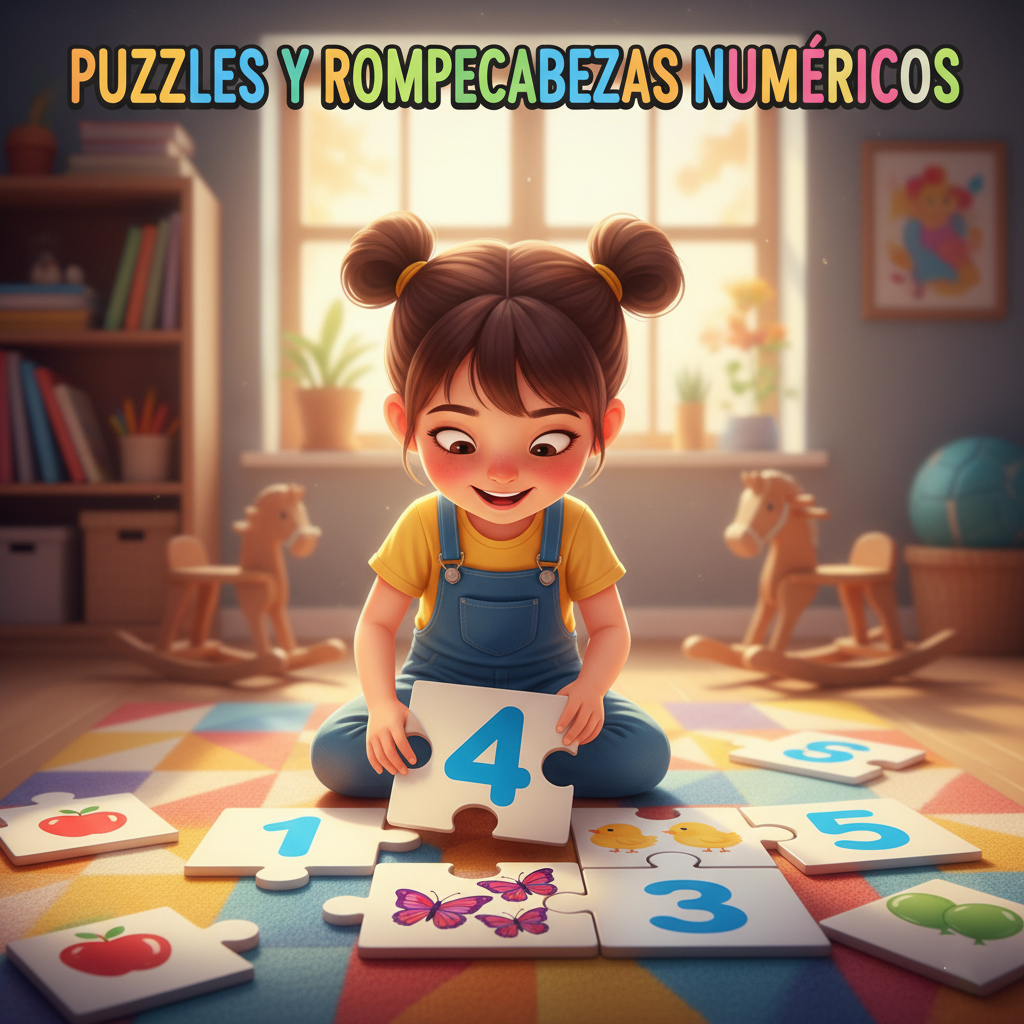 Los puzzles que asocian el número con una cantidad de objetos son una excelente herramienta visual. Por ejemplo, una pieza puede tener el número «4» y la pieza que encaja tiene el dibujo de cuatro mariposas.