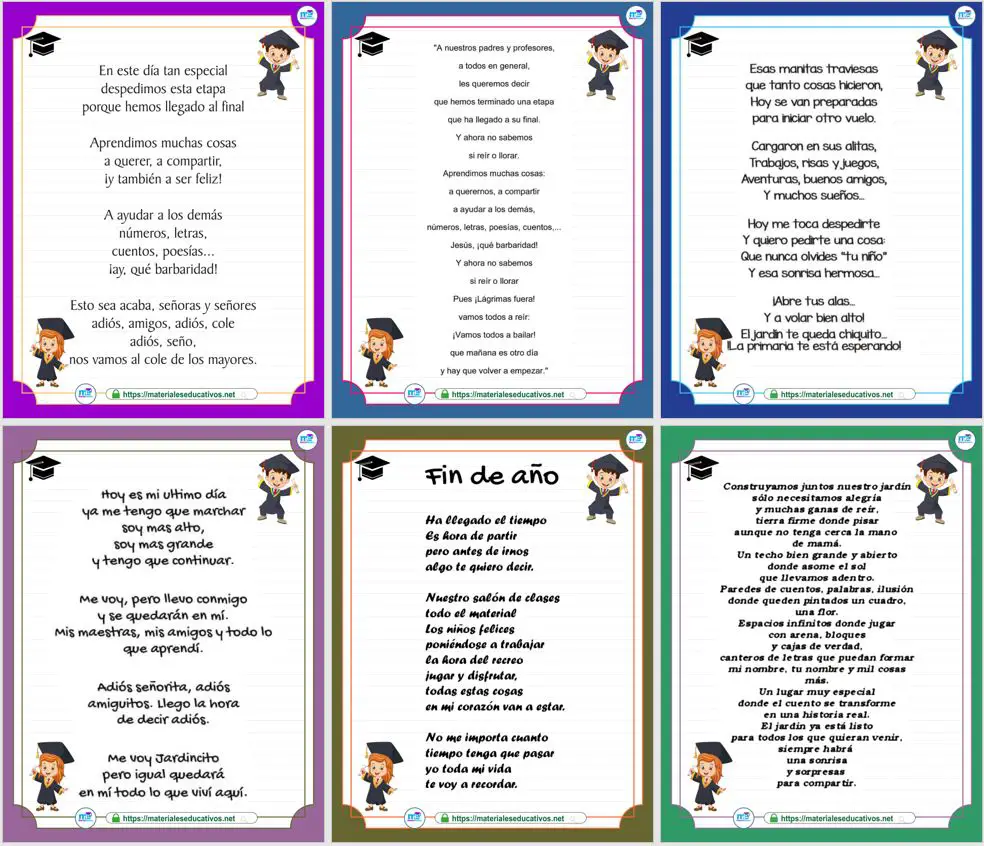 Palabras de despedida y poemas preescolar y primaria. Archivo completo en PDF