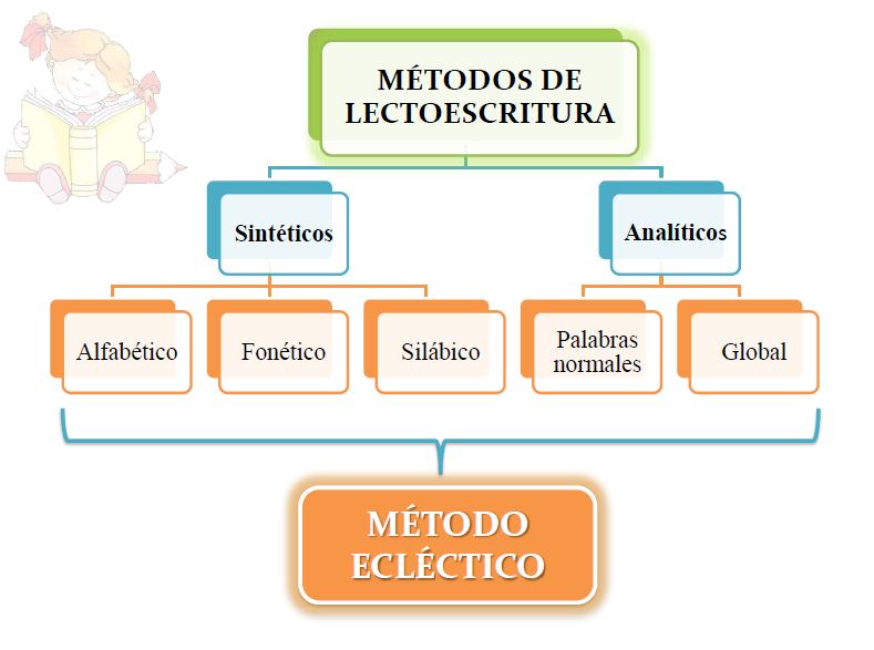 El método ecléctico integra diferentes aspectos de los métodos sintéticos y analíticos, este procedimiento propicia la enseñanza y el aprendizaje de la lectura y la escritura de manera simultánea.